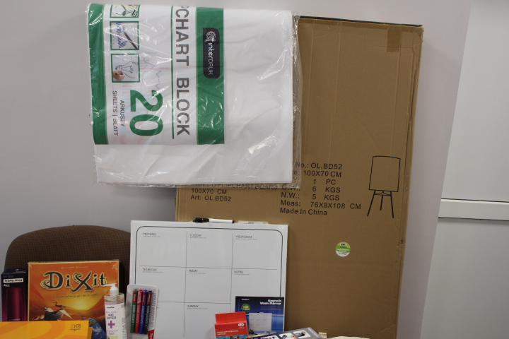 Tablă flipchart cu multe foi, caiete și stilouri, capsatoare, tablă magnetică, sticluțe-filtrante pentru elevi, markere și cretă colorată, jocuri intelectuale și multe altele vor contribui considerabil la activitatea Clubului!