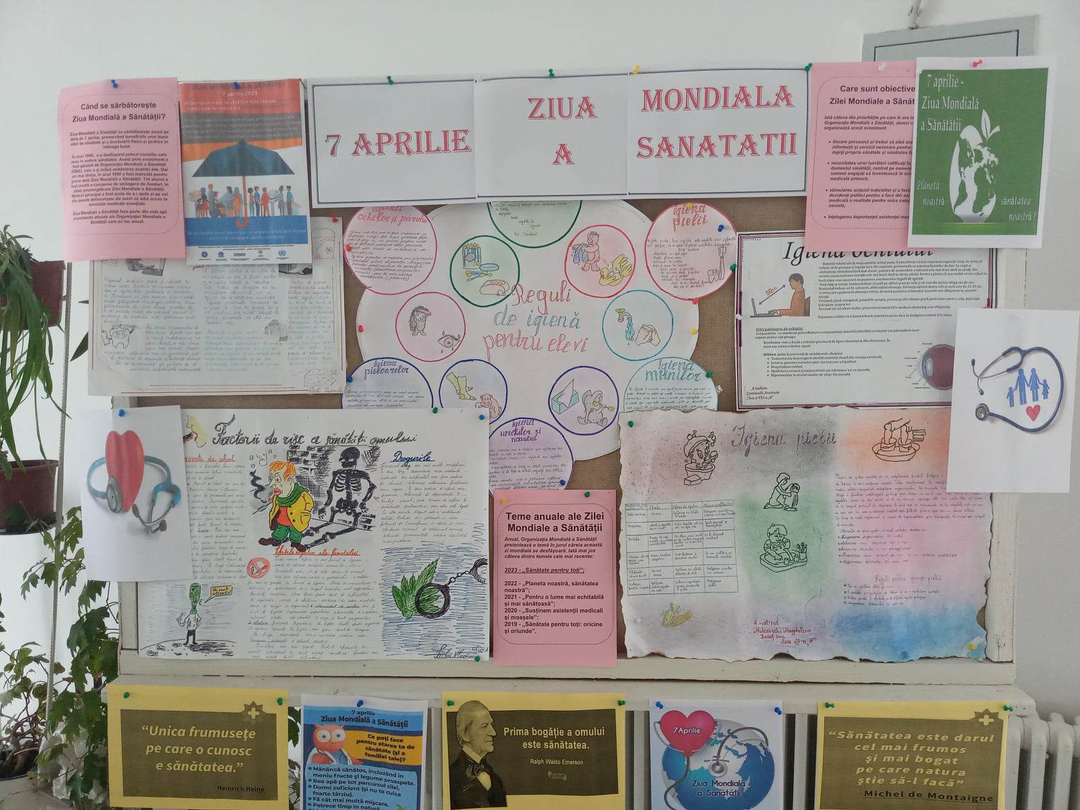 S-a încheiat săptămâna Biologiei cu sărbătorirea Zilei Mondiale a Sănătății – 7 aprilie. În această zi, pentru a promova modul sănătos de viață membrii Consiliului Elevilor au vorbit despre importanța sănătății la radioul școlii, au împărțit pliante, broșuri, carnete, stilouri etc.