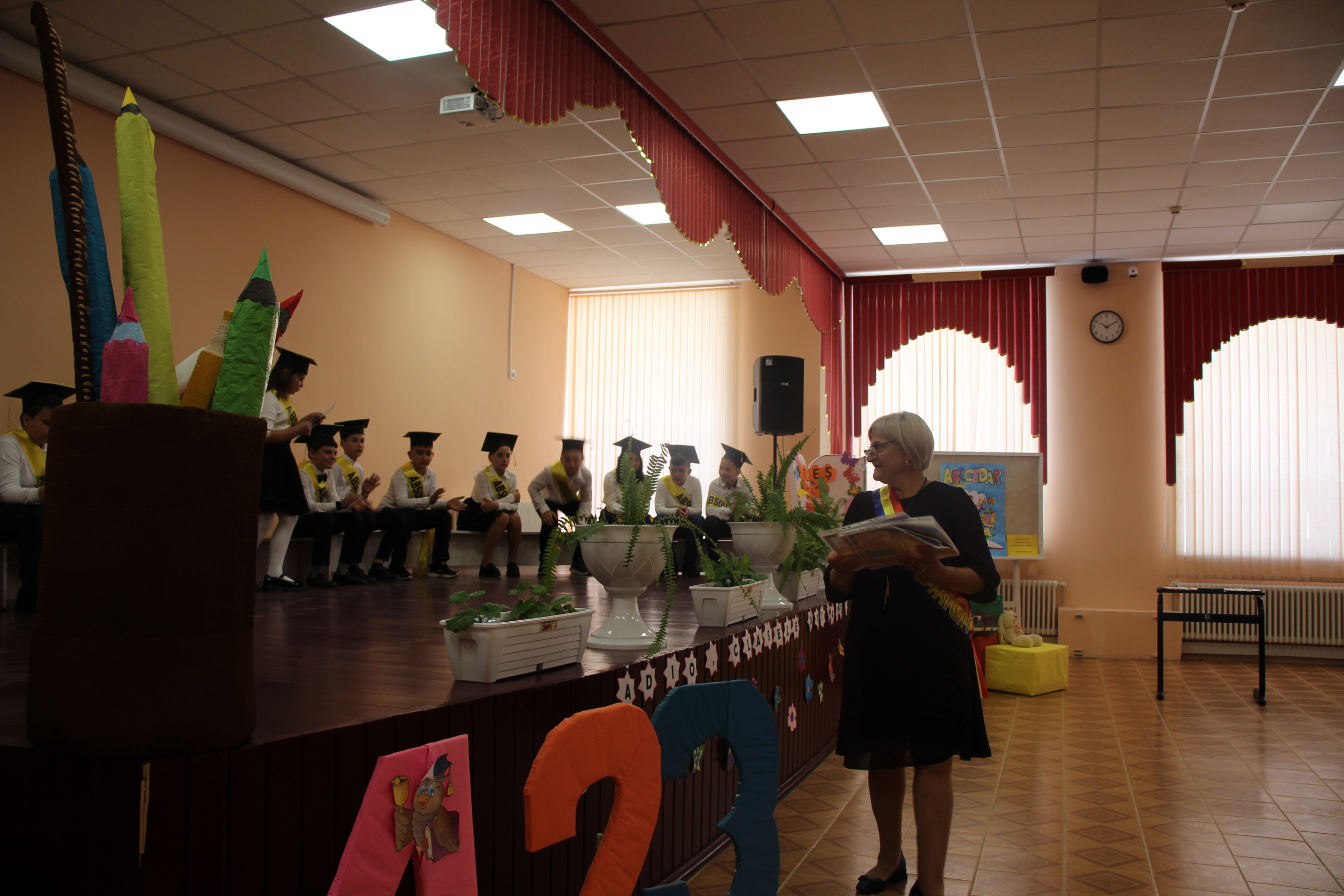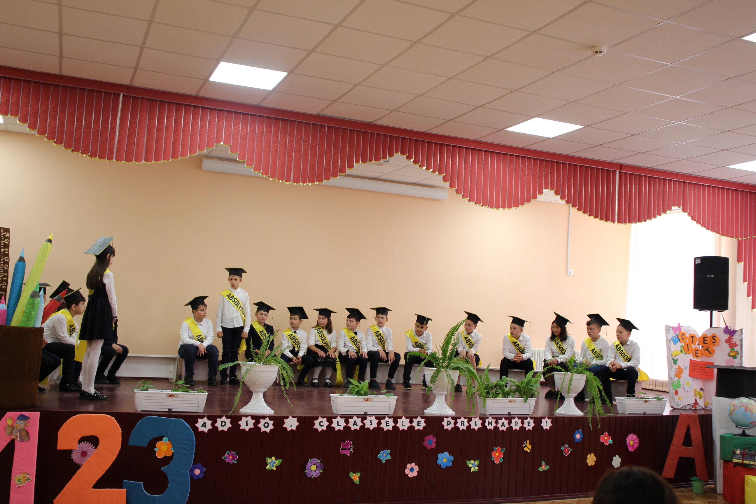Astăzi, elevii clasei a IV-a „A”, călăuziți de învățătoarea Guțu Elena, s-au adunat pentru a celebra încheierea ciclului primar.