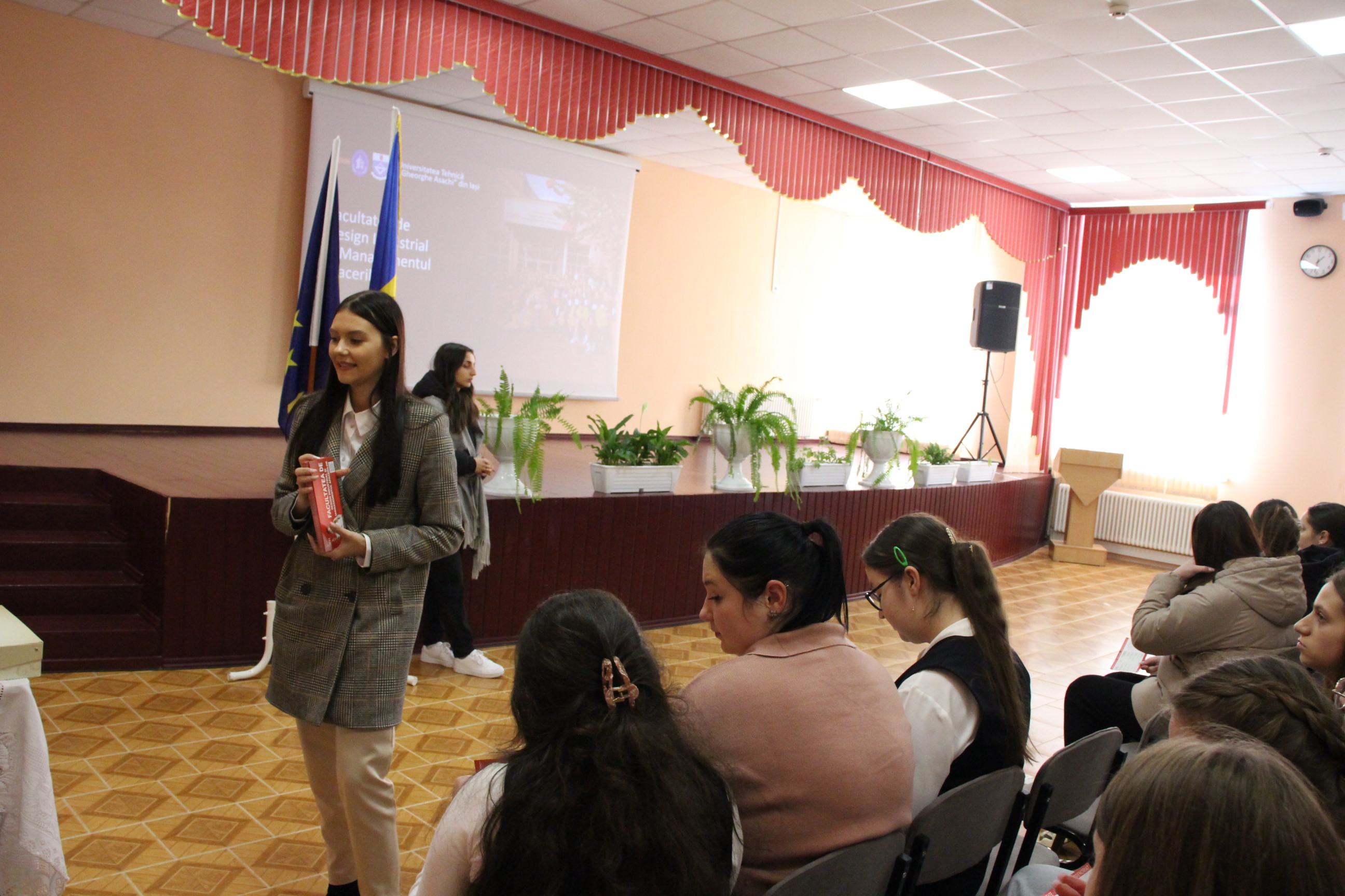 Trei studenți din cadrul Universității Tehnice ,,Gheorghe Asachi” din Iași, Facultatea de Design Industrial și Managementul Afacerilor, au explicat și prezentat liceenilor claselor a XII-a despre: