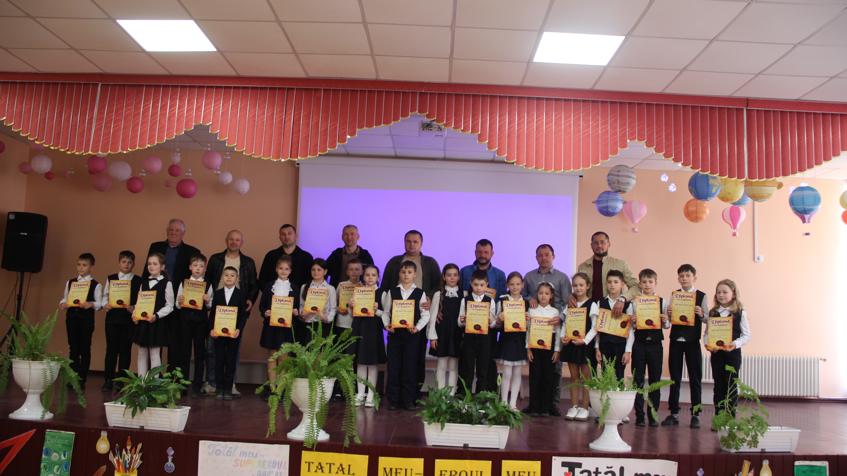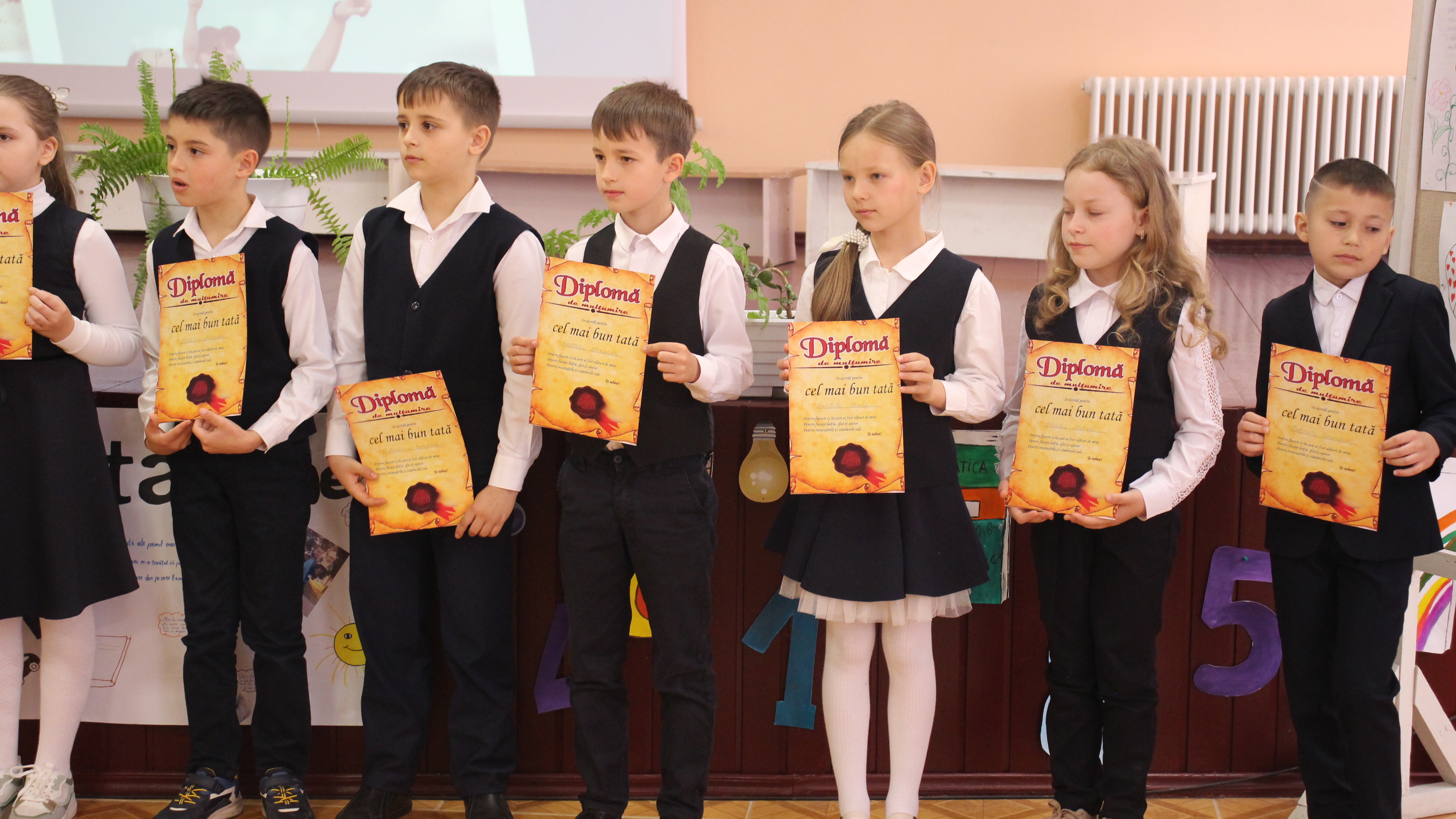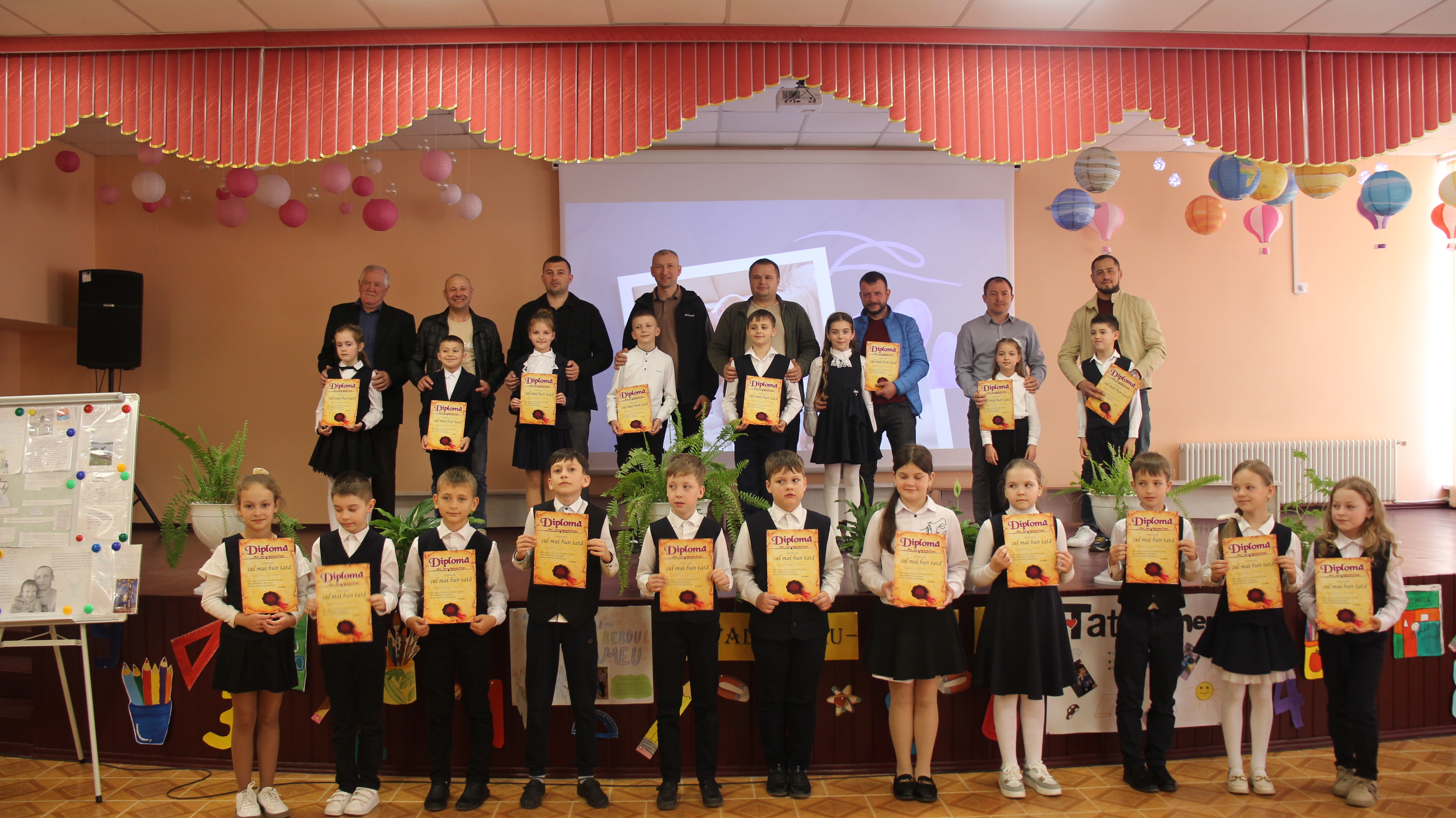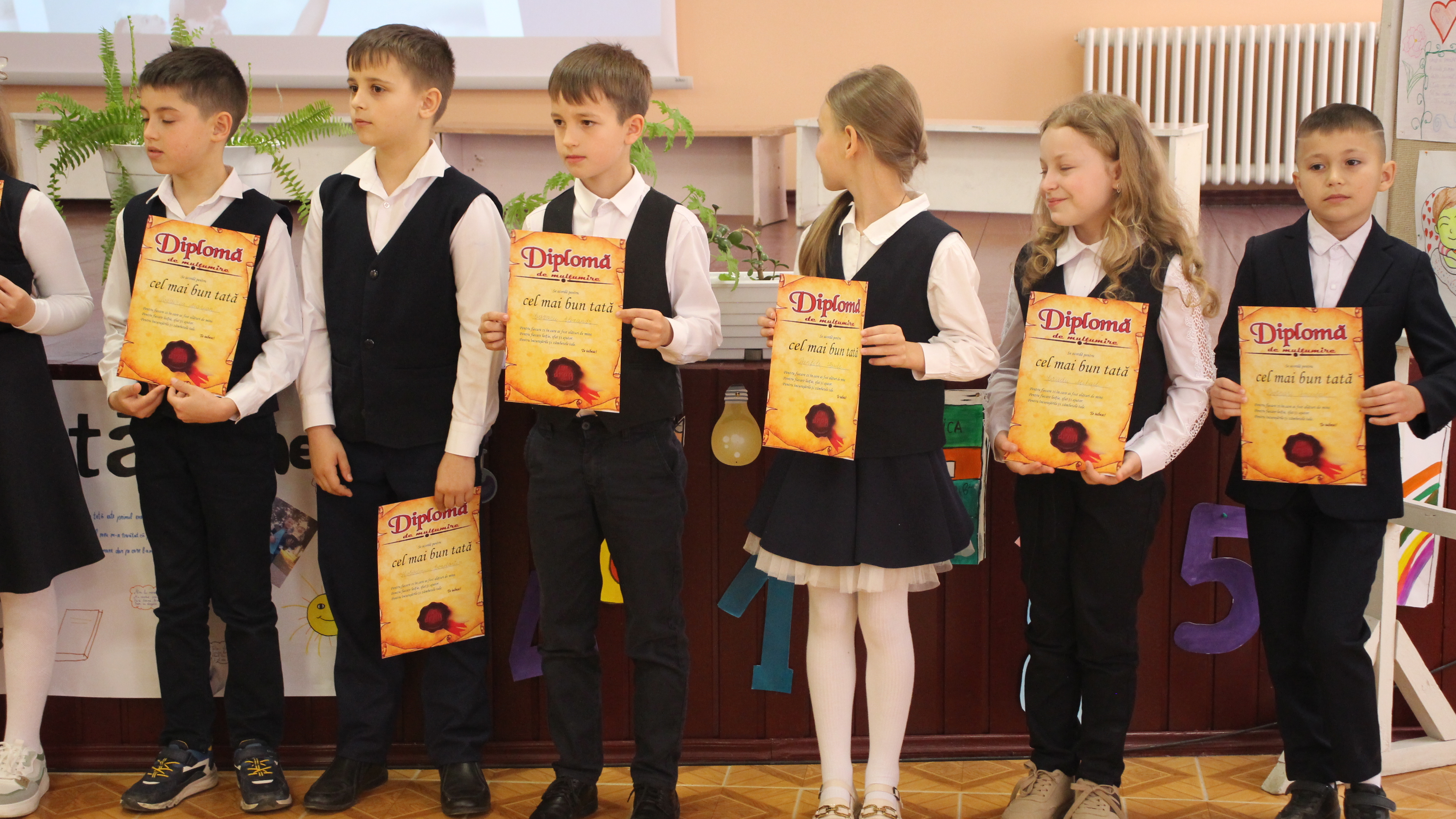 În semn de recunoștință copiii le-au înmânat tăticilor diplome de mulțumire.